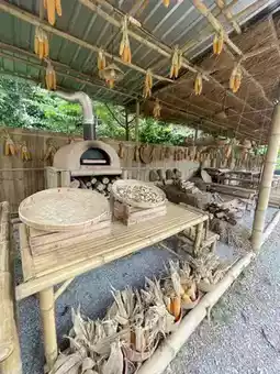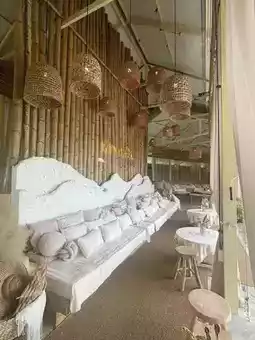 Scenic bamboo surroundings, fresh mountain air, dreamy setup like a fairytale forest café 🌲✨