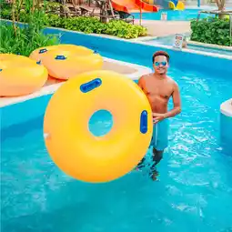 Have fun with the slide, water tunnel, and float on a rubber ring.