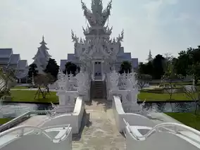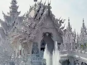 The moment you see Wat Rong Khun, you will be overwhelmed by its beauty. The entire building is covered with white plaster and mirror decorations, and on sunny days, it sparkles in the sunlight, evoking the image of "paradise".