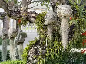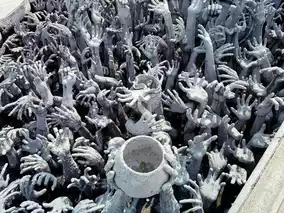 On the way across the bridge to the main hall, you will find an eerie hand sculpture symbolizing hell, strongly expressing the contrast between heaven and earth, good and evil.