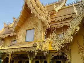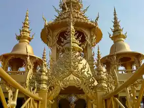 The White Temple is a work of art no matter where you look. In addition to the main hall, there are many other sights where art and faith coexist, such as a golden toilet, a giant angel statue, and a firebird statue.