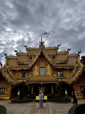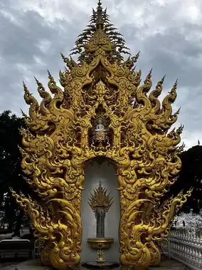 The Golden Ganesha Temple, nestled within the Wat Rong Khun (White Temple) complex, is like a dazzling bonus track 🎉. Architecturally, it's a knockout 💥, boasting golden details that pop against the White Temple's stark white backdrop. Artist Chalermchai Kositpipat's design blends traditional Thai flair with modern vibes, makin' it a visual stunner 📸. The Ganesha statue and murals inside are a colorful feast for the eyes 🎨. While it's not a must-visit solo destination, swing by if you're already at the White Temple – it's a quick, worthwhile detour 👍.