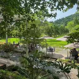 ☕️🌱Canary Farm Cafe & Restaurant is a charming cafe and restaurant nestled on a stream near Khun Korn Waterfall in Chiang Rai. Just hearing the sound of flowing water and the cool breeze is enough to make you feel like you're resting. The cafe offers both riverside seating and cozy corners amidst mature trees. They serve a wide variety of food and beverages, both savory and sweet. It's a perfect place for those looking to escape the hustle and bustle and relax by the water, soaking their feet in the stream and listening to the sounds of nature.
