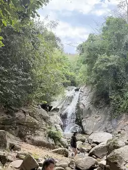 If you're looking for a peaceful and refreshing atmosphere to relax your mind, this is the place for you! Huai Mae Sai Waterfall is one of the beautiful natural attractions in Chiang Rai. Located within the Lam Nam Kok National Park in Mae Yao Subdistrict, Mueang District, Chiang Rai Province, it is about 20 km from Chiang Rai city center. This medium-sized waterfall originates from the Huai Mae Sai stream, with its source at Doi Bo. The water cascades down a 15-meter-high cliff, flowing over large rocks with crystal-clear water. The distance from the parking area to the waterfall is just 700 meters, making it an easy and comfortable walk. On my first visit, I was impressed by the tranquility and the cool, refreshing atmosphere. However, please note that there is no phone signal at the waterfall. You can bring food to enjoy by the waterfall as well.