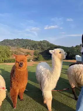 There's no entrance fee. Walk up a short hill and you'll find both sheep and alpacas. You can even hold the adorable little sheep. Food is provided for 20 baht. Enjoy a nice, cool atmosphere. Visit Chiang Rai. Visit Sheep Farm Australia.
