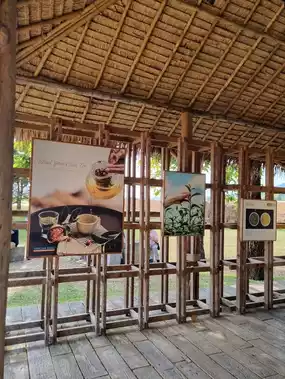 Flower Bloom Cafe at Singha Park Chiang Rai is a coffee shop and souvenir shop located within Singha Park Farm. The cafe offers a pleasant atmosphere with views of the tea plantations and flower fields, making it a perfect spot for relaxation and photo opportunities. They offer a variety of beverages, including tea, coffee, green tea, fruit juices, and cakes. Drinks and desserts are reasonably priced. In addition to drinks and desserts, there's also a souvenir corner for purchase. The cafe is accessible by farm tour bus or private vehicle.
