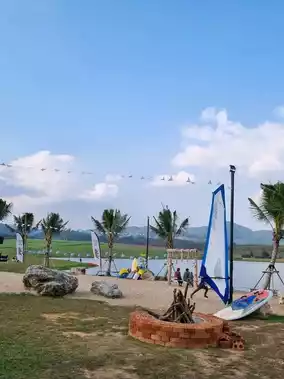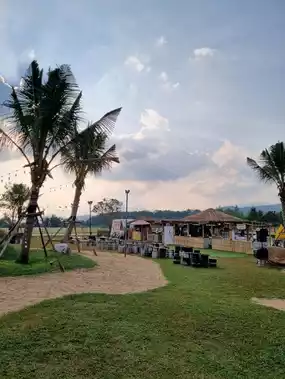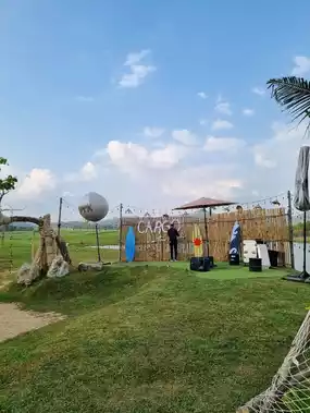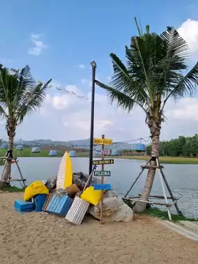 On the Beach at Singha Park Chiang Rai is part of the restaurant "Cargo on the Beach 3," a beach club-style eatery located within Singha Park. The restaurant is designed to resemble a beach, giving visitors the feeling of being by the sea. It features several picturesque photo spots and offers both outdoor and indoor seating, making it a perfect place to relax and enjoy a meal. The menu is diverse, including Thai cuisine, Western dishes, snacks, and a variety of beverages, ranging from refreshing drinks to alcoholic options. Besides dining, visitors can also enjoy other activities in Singha Park, such as cycling, zip-lining, or taking in the scenic views of the tea plantations.