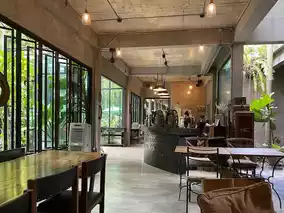 Tucked amidst towering trees, The Wanderer is a cafe that feels like you've escaped to a small forest, even though it's not far from Chiang Rai city. The shady, cool atmosphere, evokes the sounds of birds chirping and sunlight filtering through the leaves, creating a relaxing atmosphere from the moment you step inside.