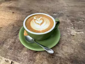 The highlight is the garden seating area and the small walking path, perfect for strolling and taking photos. It's truly a one-stop destination for great coffee, delicious food, and nature.