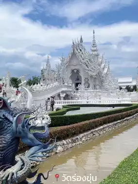 Start with 📍 Wat Rong Khun, the renowned white artwork by Chalermchai Kositpipat, a dazzling and heavenly beauty.