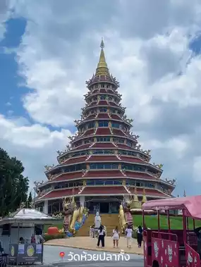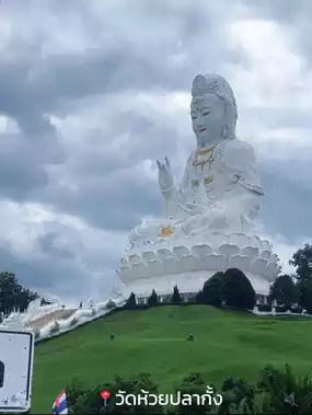 Finally, head to 📍 Wat Huai Pla Kang, with its imposing white Guan Yin statue. You can climb it to enjoy panoramic views of Chiang Rai.