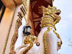 We recommend a visit to Wat Phra Singh, another ancient temple that is equally beautiful. This temple houses a replica of the Phra Buddha Sihing (Phra Singh), a sacred Buddha image in the exquisite Lanna style. The temple's atmosphere is shady and peaceful, perfect for those seeking a peaceful place to worship and pray. A must-see is the beautiful Ubosot (ordination hall) and Vihara (wihan) built in Lanna architecture, featuring delicate and intricate wood carvings. The unique design of the Vihara doors, designed by renowned artist Thawan Duchanee, is particularly striking. Located in the city center, Wat Phra Singh is easily accessible and offers a truly authentic experience of Lanna art and culture. For those who appreciate tranquility and beautiful artwork, this is a must-visit!