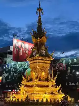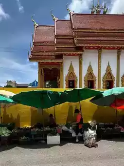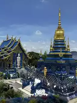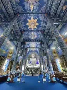 After we were full, we strolled around the city market and unexpectedly stumbled upon Wat Mung Muang, a beautiful temple hidden in the middle of a busy market. We then took a songthaew to the renowned landmark, Wat Rong Khun, which lived up to its reputation. We spent a delightful time exploring the area. Return to the city center to rest, and the next morning, we went to another highlight of Chiang Rai, Wat Rong Suea Ten, whose vibrant blue color contrasted strikingly against the sky.