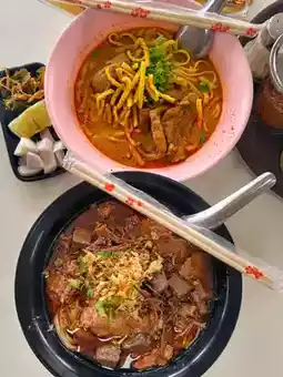 Start your Chiang Rai trip with ease by taking Sombat Tour's VIP Wiang Ping Bus from Mo Chit in the evening, arriving at Chiang Rai's second bus terminal at 7 a.m. From there, grab a Grab ride into the city for less than 80 baht. Check in to the B2 Hotel in advance, avoiding the 2 p.m. deadline. The room rate is just 315 baht per night. After packing up, head out for a hearty breakfast of khanom jeen nam ngiao and a large bowl of khao soi nuea. Both are just 110 baht.