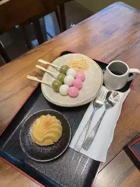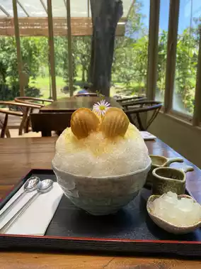 Specializing in tea-based beverages brewed with meticulous care, RiRi Tea House also serves homemade Japanese-French-style desserts. The interior is adorned with wooden elements, creating a refreshing and tranquil atmosphere by a small stream. It's the perfect spot to unwind and enjoy nature.