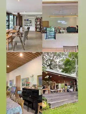The cafe has plenty of photo spots and multiple indoor and outdoor seating areas. On weekdays, it's less crowded, and people come in regularly.