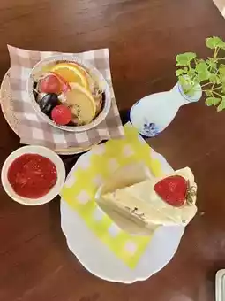 A cozy cafe with a very warm atmosphere and delicious desserts.