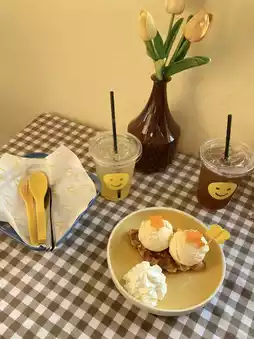 A must-try is the Bingsu 🍧, served in a large, refreshing cup with the perfect amount of sweetness and creaminess. Another favorite is the Peach Tea, a delightfully fragrant and instantly refreshing drink on a hot day. Coffee lovers can't miss the Koffen, a signature drink with a rich and aromatic flavor. A visit here offers both beautiful photos and a delicious drink.