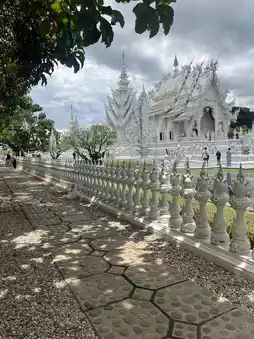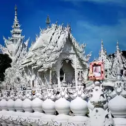 Located on the outskirts of Chiang Rai, Wat Rong Khun (White Temple) is a modern Buddhist temple begun by Thai artist Chalermchai Kositpipat in 1997.