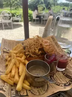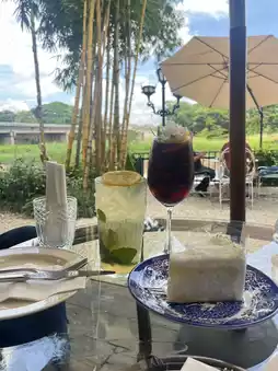 Enjoy homemade meals made with fresh local ingredients, bakery items, and original drinks in the riverside garden or terrace.