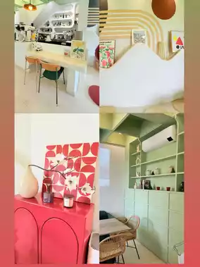 It's lush and green, with a truly natural feel. There are many photo spots, both outdoor and indoor. Food, desserts, and drinks are also available.