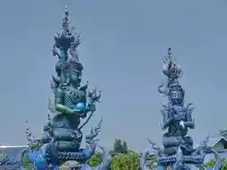 📸Wat Rong Suea Ten is a beautiful temple built in a modern Lanna architectural style. The religious buildings feature a predominantly blue and gold color scheme, while the Buddha images are pure white.