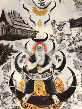 The museum showcases Thawan Duchanee's distinctive collection, including his paintings, wood carvings, and installation art created using animal bones, hides, horns, and other elements. These works are often seen as expressions of dark aesthetics exploring profound themes in Buddhist philosophy, such as life, death, and desire.