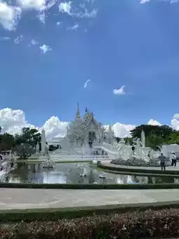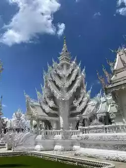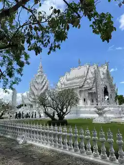 I recently visited Wat Rong Khun in Chiang Rai, and I must say, it was breathtakingly beautiful! The entire temple is pure white, shimmering under the sunlight like something out of a fantasy world. As you walk in, you'll encounter a bridge leading to the main hall, which is designed with incredible grandeur. Inside, there are modern paintings blended with Buddhist art in a way that's truly unique—featuring heroes, cartoons, and famous movies, all seamlessly integrated with profound Buddhist teachings. The atmosphere around the temple is serene, with plenty of picturesque spots for photography. If you love art or want stunning photos for social media, this place will not disappoint. I was so impressed that I can't wait to visit again!