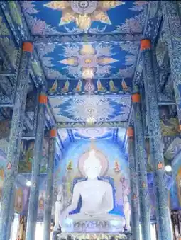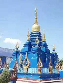 This temple boasts striking architecture, featuring blue and gold accents. The temple's exterior and interior are beautifully intricate, enshrining the Phra Phutta Ratchamongkhon Bodhi Triloknath. Built by Ajahn Phutta Kabkaew, a disciple of Ajahn Chalermchai Kositpipat, the temple offers a beautiful atmosphere perfect for photography, making merit, and admiring art.