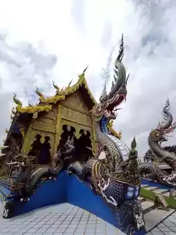วัดร่องเสือเต้น ที่จังหวัด เชียงราย สวยตะลึงตามาก! เป็นที่รู้จักในชื่อ "วัดสีน้ำเงิน" ค่ะ 💙 ตั้งแต่ทางเข้าที่มีพญานาคสีฟ้าสุดอลังการต้อนรับ ไปจนถึงวิหารหลักที่ประดับด้วยสีน้ำเงินเข้มและสีทองอร่าม คือวิจิตรบรรจงสุดๆ 🤩