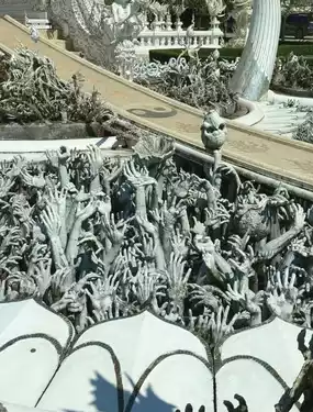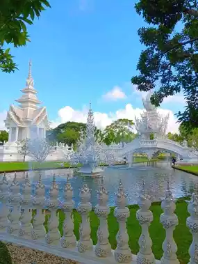 🕌 The temple's architecture and intricate artistic designs attract visitors throughout the year. The main hall (ubosot) of Wat Rong Khun is pure white, symbolizing its uniqueness and earning it the nickname "Thailand White Temple" among international tourists. The temple is adorned with exquisite decorations, including ornate gables and delicate patterns, making it a truly magnificent sight.