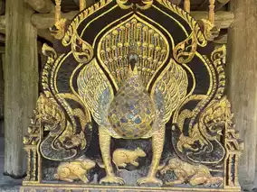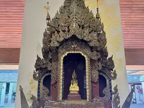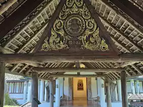 Worship the sacred Buddha image in the Ho Kham, admire the teak exhibition, and admire folk art in the Ho Kaew. Surrounded by a tranquil pond, it features a garden of fragrant trees and diverse flora.