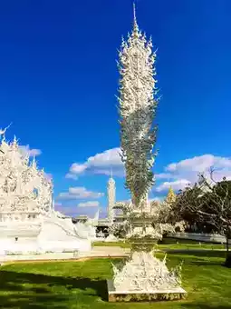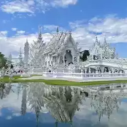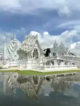 Under the sunlight of Chiang Rai in northern Thailand, stands a white building—this is the stunning White Temple (Wat Rong Khun). This entirely white complex sparkles brilliantly under the sun, resembling the entrance to a fairy-tale paradise, sharply contrasting with the traditional golden and ornate Thai temples.