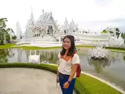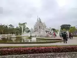 Wat Rong Khun was designed and built by Professor Chalermchai Khositphiphat. The temple is white. The outer area is a pond. The temple itself is a beautiful sculpture. Inside, there are contemporary paintings. However, taking pictures is prohibited inside. Wat Rong Khun is very popular with Chinese and Thai tourists.