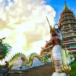 Highlights - The first place is Phop Chok Tham Chedi, which is named after Phra Ajahn Phop Chok. It is a triangular pagoda connected in 9 levels and surrounded by 12 small pagodas. It was built according to Phra Ajahn Phop Chok's vision. Another important highlight of the temple is the large "Guanyin" statue, 79 meters high, built according to Phra Ajahn Phop Chok's vision. It is located on a small hill. This Guanyin statue is the Bodhisattva Guanyin in the Phop Chok posture. It is a Chinese sculpture of the Bodhisattva Guanyin (Guanyin) and is one of the largest in Thailand.