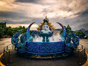 When talking about temples in Chiang Rai, many people probably think of Wat Rong Khun (White Temple). But today, we'll talk about the Blue Temple, or Wat Rong Suea Ten.