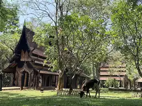 Baan Dam or Baan Dam Museum is located in Nang Lae Subdistrict, Mueang District, Chiang Rai Province. It was built by Ajarn Thawan Duchanee, a national artist who is skilled in painting and sculpture. He has created many works of art, both paintings and sculptures. Baan Dam is also open for tourists to come and experience the beauty of art that is unique. Baan Dam is a group of houses built in Lanna art. #Baan Dam #Chiang Rai
