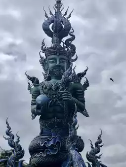 The Blue Temple is a royal monastery located atop a hill in Chiang Mai's Mae Taeng district. Below lies a sacred cave revered by villagers, and it is surrounded by beautiful rural scenery.