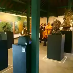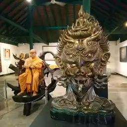 .. Inside the art gallery, Buddhist art works are displayed, including sculptures of Buddhadasa Bhikkhu, castings of Buddha images, and imaginative castings, as well as paintings by Ajarn Thawan Duchanee and various sculptures.