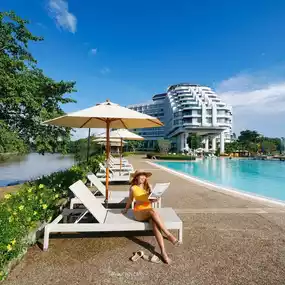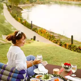 Relax at a luxury resort amidst nature on the banks of the Kok River.