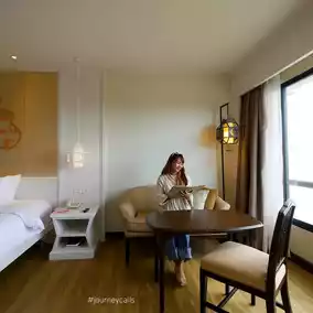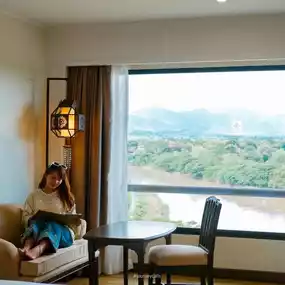 This time, I chose to stay in a Deluxe River room. The room was very spacious and most importantly, the view was very beautiful. Standing from the room window, I could see far away. Both the winding river and the beautiful mountain view. It was my wish to travel up North. 😍