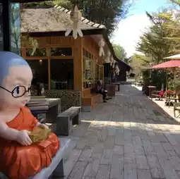 The monks were kind and gave us ideas and precepts and blessings, which were auspicious for us... After that, we sat down to have coffee in the temple shop before going back.