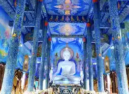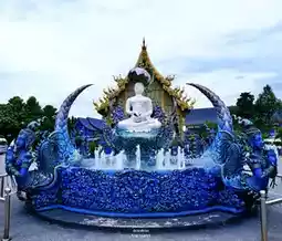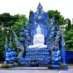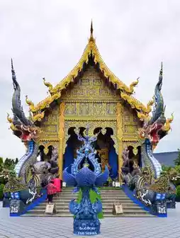 The only blue temple in Thailand, very impressive, stands out with a blue chapel contrasting with the golden yellow. The highlight is the "Blue Ubosot" inside the temple, which is mainly blue, making Wat Rong Suea Ten very distinctive.
