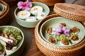 Canopy offers an all-day menu and serves dishes in traditional, natural trays, achieving a perfect balance between sweet and delicious and high-end and exquisite. The Mekong Discovery menu pays tribute to the traditional cuisine of the Golden Triangle region, including Laotian seaweed with yellowfin tuna salad and Chiang Rai curry pork with toast.