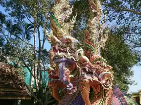 .. It is a beautiful building that reflects the beautiful identity of Chiang Saen art. The pediment is carved with a floral and vine pattern, the doors and windows are decorated with zodiac animals, and the Naga stairs leading up to the building clearly indicate the Lanna identity.