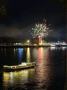 📍The nighttime view of Chiang Saen is absolutely stunning. Sit by the Mekong River and enjoy the scenery of mountains from Laos. It's especially beautiful at night with the illuminated buildings on the Laos side, creating a breathtaking sight. Flow Chiang Saen is located outside Chiang Rai city, about a 45-minute drive away. This place is both a café and a restaurant, offering savory dishes, desserts, and drinks all in one spot. ✨️