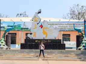 The Golden Triangle is a border area between three countries: Thailand (Chiang Rai Province), the Lao People's Republic (Bokeo Province), and Myanmar (Tachileik, Shan State). The triangular area meets the Mekong River, offering stunning scenery. There's also the large Phra Chiang Saen Si Phaendin (Four Reigns Buddha), also known as Phra Phuttha Nawalan Tue, on the banks of the Mekong River for visitors to pay their respects to.