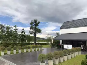 you'll see a beautiful white house in the middle of a rice field overlooking Doi Sango.