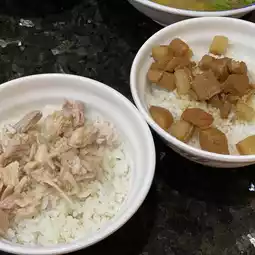 The turkey rice is topped with chicken oil and chicken juice. The rice absorbs the soup and adds a salty aroma to your mouth. It will make you mouth-watering!