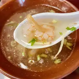 The shrimp soup is light and refreshing, making it the perfect complement to the meal!